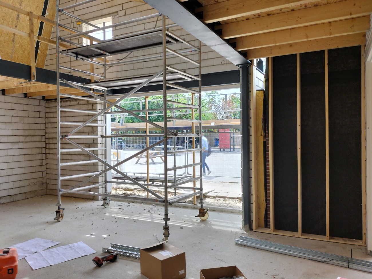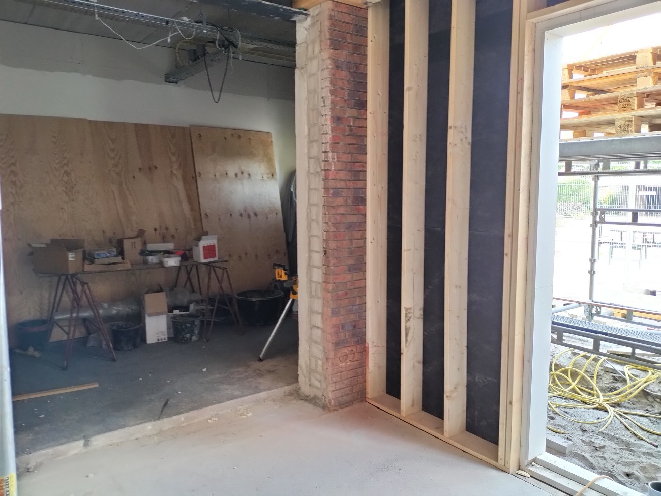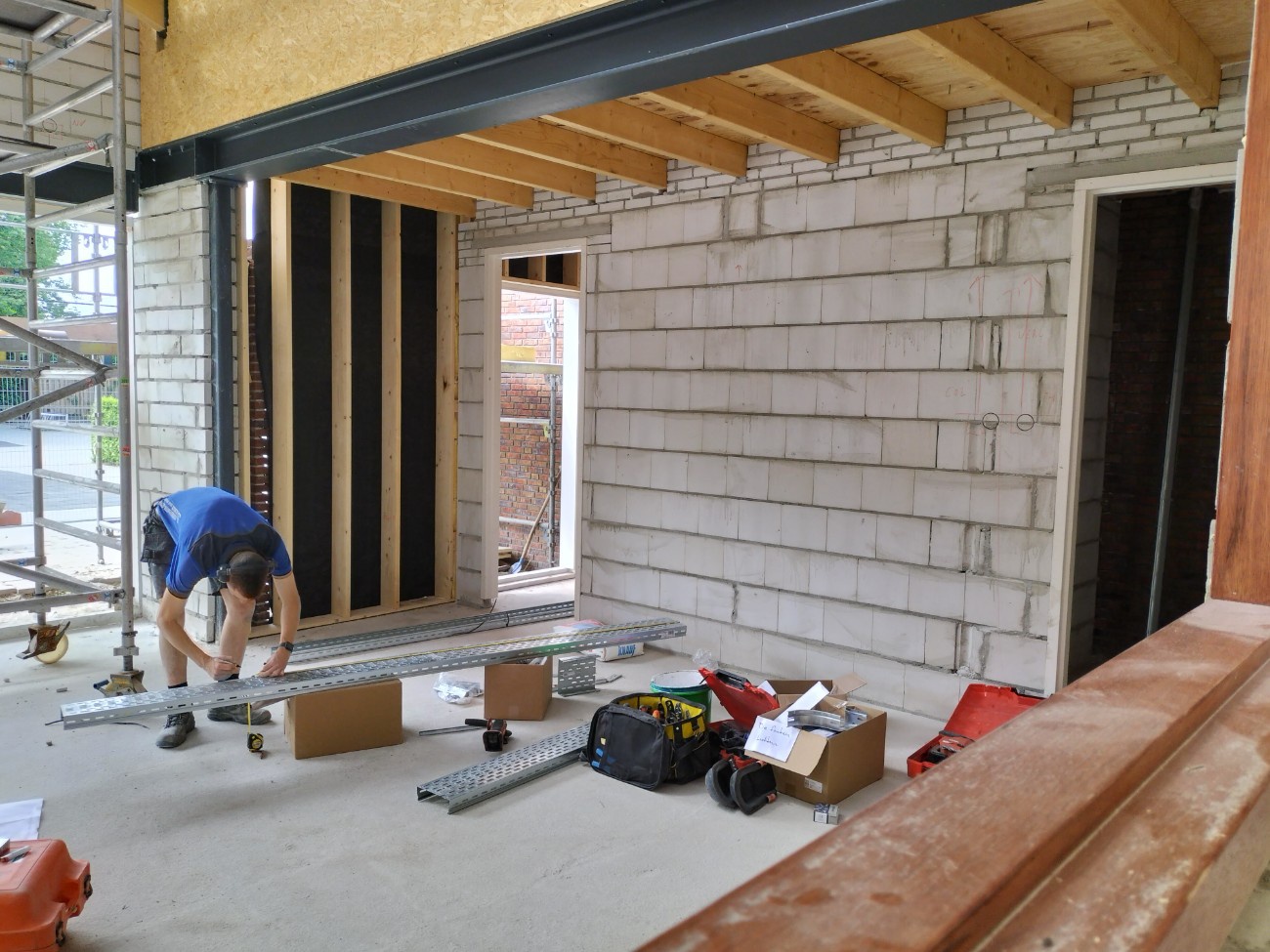 Binnen zijn de installateurs bezig.